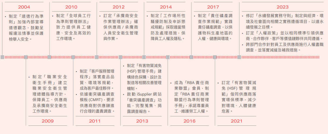 我們亦會評估將調查範圍涵蓋新商業關係,未來若有併購、合資等新商業關係,將會進行人權盡職調查作為評估參考之一。