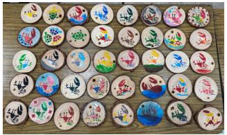 ▲ 英業達志工親手製作木片杯墊致贈偏鄉學童